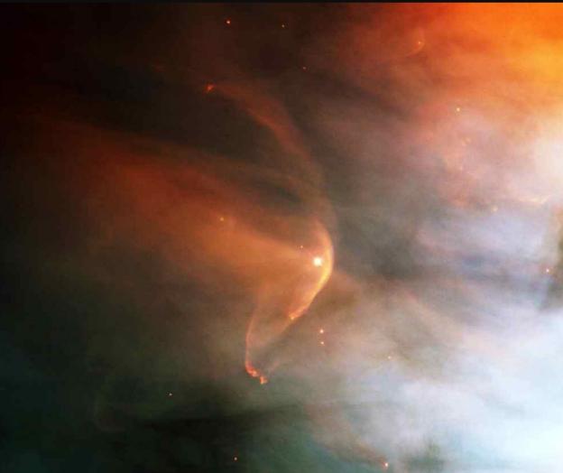 一个由LL Ori恒星产生的“太阳风”和猎户座星云星际风交互产生的“弓形波”。