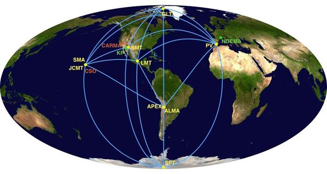 首先,事件视界望远镜(EHT)和天眼没有可比性,这是两种概念。事件视界望远镜并非单一的射电望远镜,而是由全球8座天文台的射电望远镜所组成,并且每座天文台的射电望远镜也并非单一的,而是由多架天线阵组成。这些射电望远镜通过甚长基线干涉技术(VLBI)来模拟一架口径巨大的望远镜,从而可以观测到黑洞。