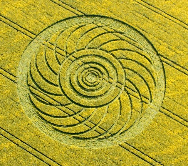 阿基米德螺线在历年的麦田圈中出现得很多。人类伪造者需要一定的中心半径柱子才可以做出来。