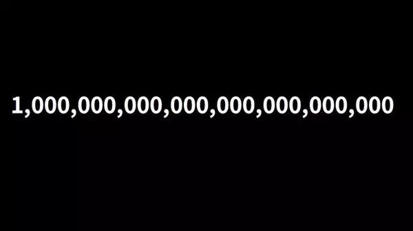 对应每一个银河系的恒星,就有一个巨大无比的星系。也就是说,可观测宇宙内的恒星数量大概是在 10^22 到 10^24 之间,这个数字写出来是这样的: