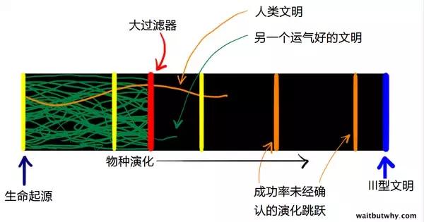 下图展示了两个物种跃过了大过滤器,而我们是其中之一。
