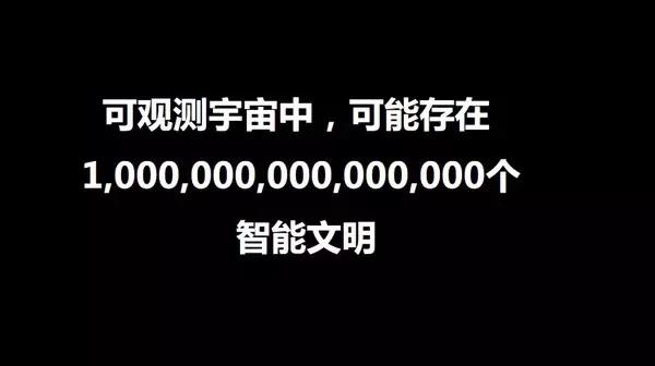 再假设,那些出现了生命的行星中,有 1%的行星上的生命的智能发展到了类似地球的程度。这就是说,可观测宇宙中存在一百万亿个智能文明。