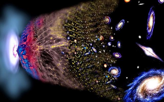 在138亿年前,宇宙从一个炽热、稠密的奇点中发生大爆炸而形成。此后,宇宙不断扩张和冷却,最终演变为如今的状态。