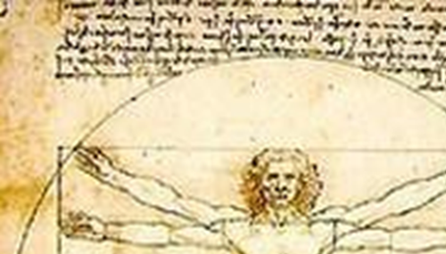 维特鲁威人是列奥纳多达芬奇在1487年前后创作的世界著名素描。这幅由钢笔和墨水绘制的手稿,描绘了一个男人在同一位置上的十字型和火字型的姿态,并同时被分别嵌入到一个矩形和一个圆形当中。这幅素描的魅力在于抽象的几何学与观察到身体现实的相互作用。画中人的身体只画了主要几部分,但轮廓优美,肌肉结实。这人的双脚似乎是踩在正方形的底边和抵在圆形的弧线上。这两个姿势给人一种运动的感觉,好像体操运动员的动作,实际上是一个人在上下摆动双臂,如同小鸟摆动翅膀一样。这幅素描中人体的线条清晰而简约,但脸部的处理却有些不同。