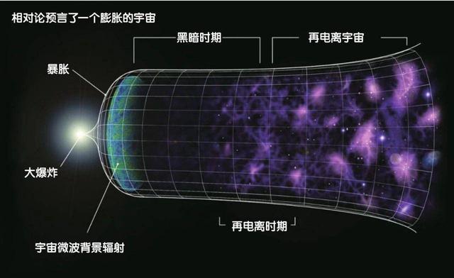 相反地,唯一发生的事情就是粒子间的空间膨胀了,随之,粒子间距离增加,那个空间的辐射波长被拉长了。这已经在宇宙历史上持续发生了上十亿年了,并且在今天会继续发生。即使我们过去在以光速运动,我们今天也可能永远不会接触到一个156亿光年以外的物体,这不是因为物体在以超过光速的速度后退,而是因为不同位置间的空间在持续膨胀。