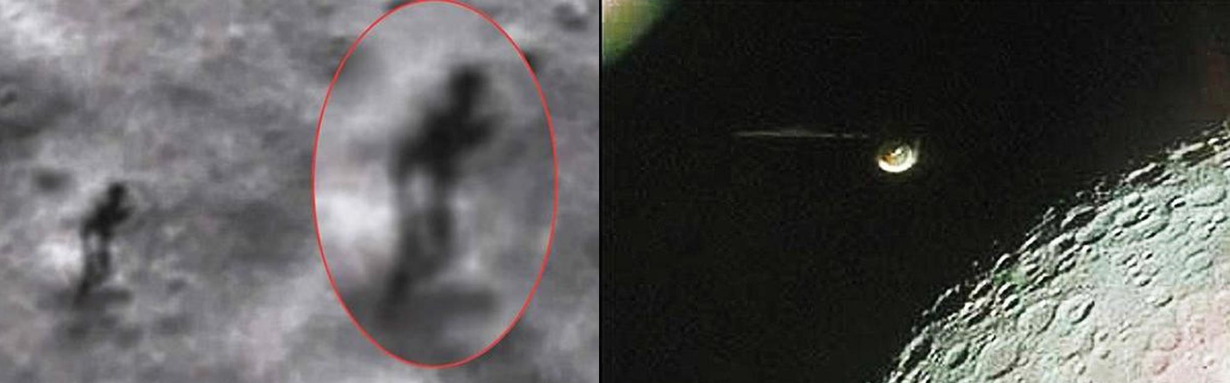 这个照片中,远端的黑色空间中出现了拖着光尾巴的不明物体,一些认定外形存在的人,认为这是外星人的宇宙飞船在升空。有科学家解释,认为这是从月球上看到的星星的样子,但这个理由却无法解释,为何星星会有尾巴。