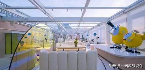 三层洽谈区平台是陨石村村民探索太空的基地。这里有如梦如幻的玻璃吊顶,可以用设计师们准备好的太空望远镜,在天气舒朗的夜晚,一起寻找行星的轨迹。