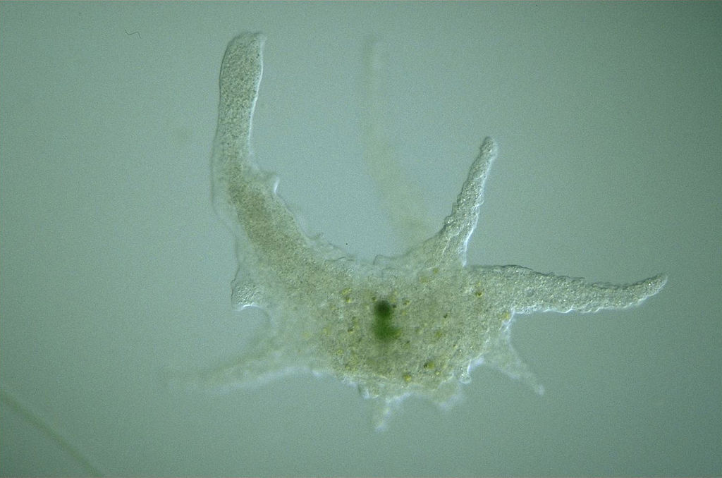 有孔虫(Rhizaria):来自一部分以前的海洋原生生物。可分泌碳酸钙质外壳,但原生质为不定形变形虫态。有些种类可以保留吃掉的藻类的叶绿体进行光合作用(Bernhard,1999),为叶绿体二次内共生假说的可能性提供了某些参考。代表种为各类有孔虫。