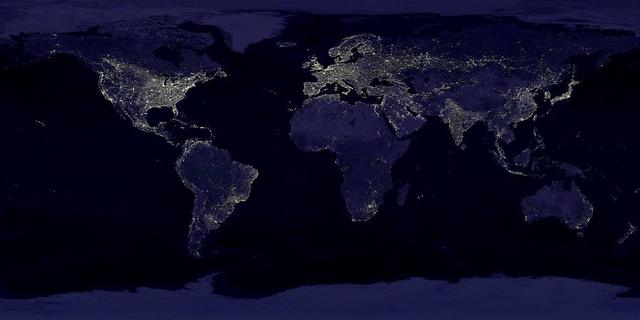 图解:一张地球夜间的合成照片,使用的是国防气象卫星计划实用行扫描系统的数据。我们可以从太空探知人类文明。