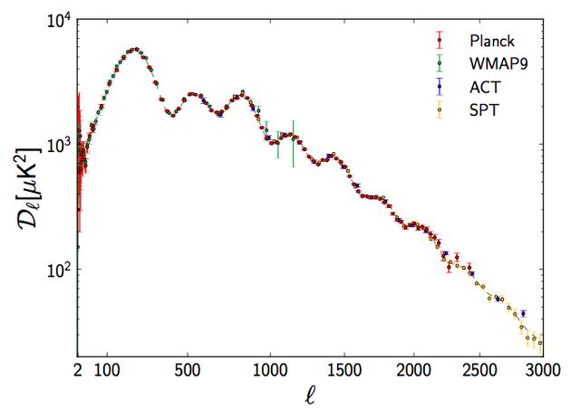 但事实上我们已经测量了早期宇宙密度波动的大小,也就是微波辐射的波动,以及从最大尺度到最小可测量尺度,密度波动是如何随尺度变化的。