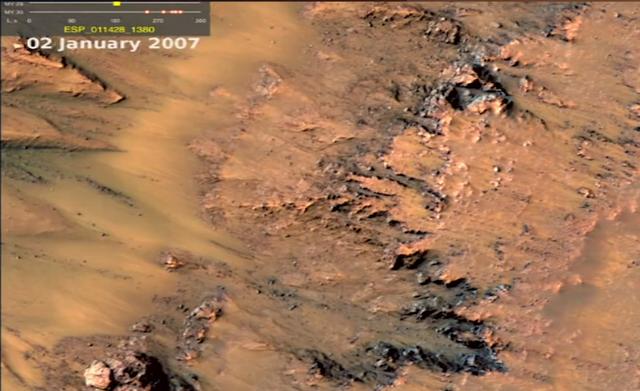 含水的盐会降低盐水的冰点,就像在地球上,我们往道路上撒盐,冰雪会融化的更快。科学家们表示,这可能是浅层的地下水流动,有足够的水慢慢流向表面,才能解释得通条纹的变深。
