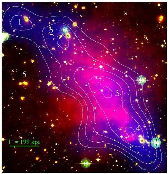 它被命名为SL2S J08544-0121。通过可见光、X射线成像和大规模的引力重建,第一次显示了正常物质和暗物质在小结构中所处的位置之间的巨大差异!