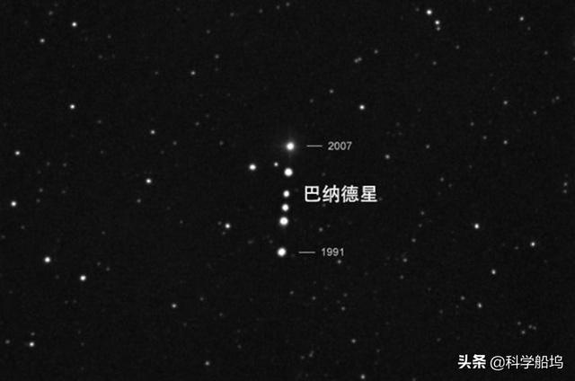 举个例子,距离地球6光年远的巴纳德星,6光年在宇宙中算是比较近的距离了,它是一颗红矮星,由于距离我们较近,并且在现阶段中,它一直在朝着太阳运动,在不到20年的时间里,它的位置就发生了很大变化,如图所示。