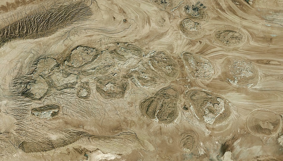 下图是伊朗卡维尔盐漠的卫星照片,但其构造过程要比木卫二简单的冰壳复杂得多。