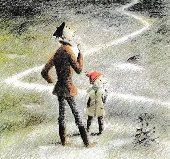 孩子问他:“宇宙里有多冷呢?” “零下263度。”爸爸回答说。好不靠谱的一个爸爸呀。在路上,他们还买了所谓的旅行食品——就是一包口香糖,然后一路上就是一些流水账,一些我们自己家的爸爸都做过的看似很平常的小事,比如解释“哈气”的原因,比如“我们沿着右边的矮墙走。爸爸拉着我的手,这样我就不会走丢了。”温馨的画面与平静的文字融合在一起,完全没有宇宙那么宏大的感觉。我们充满了好奇,父子俩会看到什么样的宇宙呢?