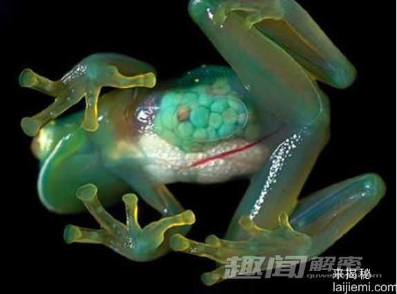 这种生活在热带美洲的青蛙最奇特的地方是它们拥有全透明的皮肤。人们不用解剖它们便能看到它体内的东西。的确,当你从下面看的时候,你能清楚地看到它们诸如心脏、肠、肝等内脏。它们跟树蛙有亲缘关系,并且它们的行为也有一定的相似性。