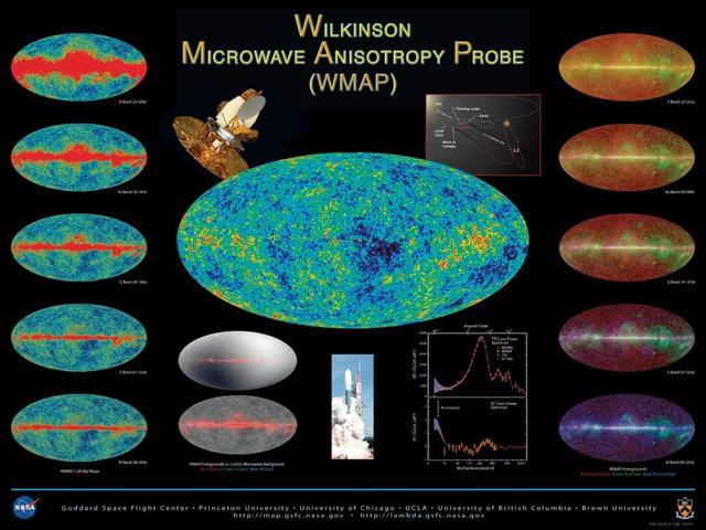 但是,我们不太可能去通过计算宇宙中所有天体的密度来测量宇宙的平均密度。这次,科学家们使用了威尔金森微波各向异性探测器卫星(WMAP),测量了2001年至2010年宇宙中最早的光中的暖点和冷点。通过测量宇宙微波背景辐射图谱中显示为明亮和暗淡的区域,可以推测出宇宙的密度。因为物质对光施加引力,使其轨迹弯曲。当微波背景光子向我们传播时,它们的路径被宇宙中的物质弯曲了。宇宙中物质越多,光路弯曲的越多,天空中出现的振荡区域就越大。