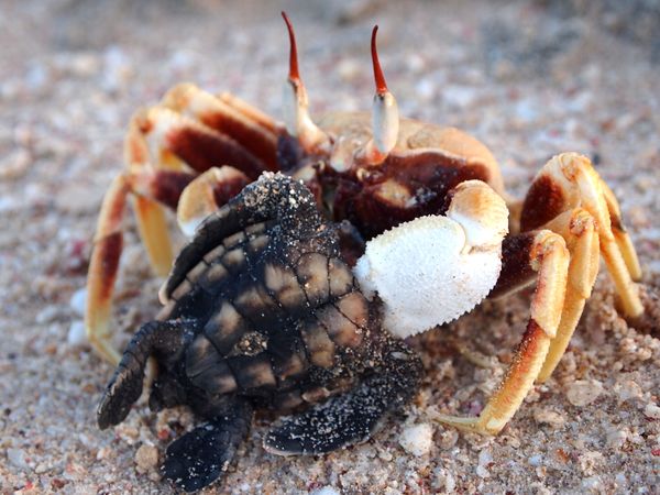 图8.正在进食海龟幼崽的角眼沙蟹(Ocypode ceratophthalmus)