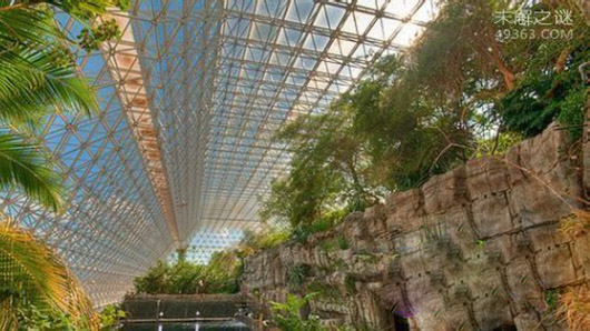3.15英亩,全玻璃钢结构的封闭建筑内,人造出一个与世隔绝,自给自足的循环生态,包括森林,沙漠,甚至是一片微缩海洋。一群志愿者被关在里面狂欢,但是严禁出入,包括任何与外界的物质交换。