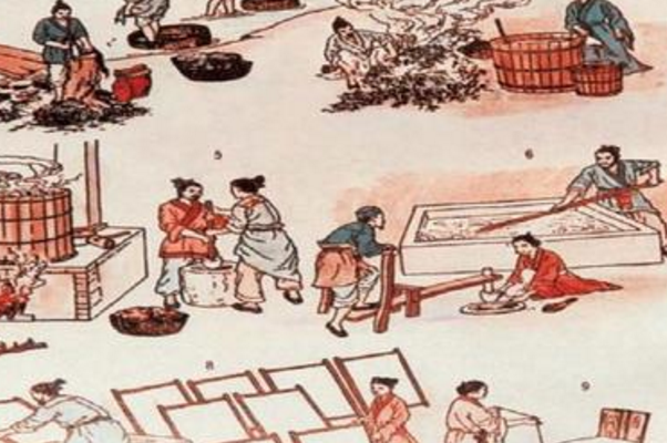 直到汉武帝时期,蔡伦才结合之前的造纸经验,以一些廉价的破布、渔网、树皮、麻料等,浸泡白天后,经过捶打和搓洗将这些树皮和麻料褪去皮和壳等坚硬的部分,再涂抹上石灰水,之后蒸煮八个昼夜,冷却后取出,利用草木灰进行浆洗,又开始重复蒸煮和涂抹石灰水的过程,十多天之后所有的材料就会变为浆糊状,碾磨后用方格工具平摊捞起,经过几天的晾晒,就做出了一种更加顺滑且轻薄耐用的纸张。