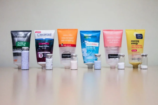 英国常见洗面奶和其中发现的微塑料颗粒。来源:伊莫金·纳珀的个人博客