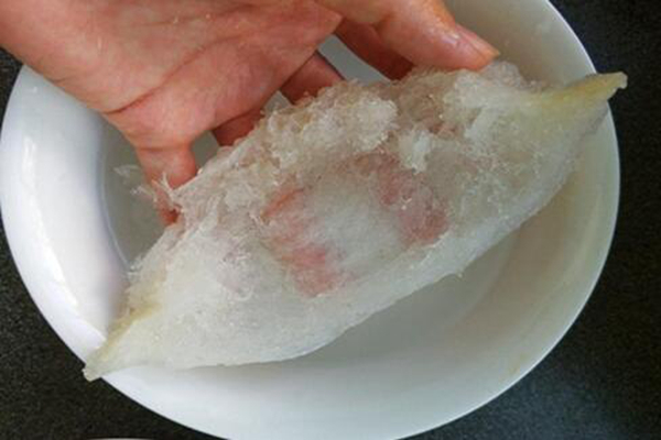 将燕条再次放入清水中洗干净,捞出来将水分去除,将燕条打开呈燕丝状,并且还要再用水浸泡两个小时左右,这时候一定要拿捏好水量,刚刚没过燕条就可以,紧接着用一个器皿装好,并且用保鲜膜覆盖,将其密封,放入冰箱的冷冻里面。