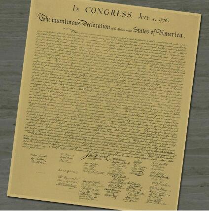 独立宣言颁布的时间在1776年7月4日,独立宣言不止是美国革命的纲领性文件,杰斐逊在其中囊括了有关法律、政治、历史以及古希腊的自由观念和17世纪的启蒙思想等等观念。宣言还继承了洛克的“天赋人权”思想。