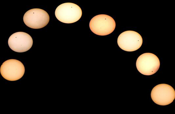 因为金星的公转轨道在地球的公转轨道和太阳之间,所以当地球和金星公转有一定的重合的时候,大家就会看见在太阳之上有一个黑点经过,这样的现象大家称作为金星凌日。胆识最近的一次金星凌日的现象是在2012年,如果错过的朋友要再等上一百多年来。