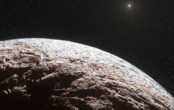 根据科学探测,鸟神星形如球体,但并不是完全圆形,就像地球一样,它位于柯伊伯带中,距太阳40多亿英里,每隔约310年完成一次轨道运行。如上图所示,是科学家构想的鸟神星的表面,它表面温度极低,约30K,也就是零下243.2℃!