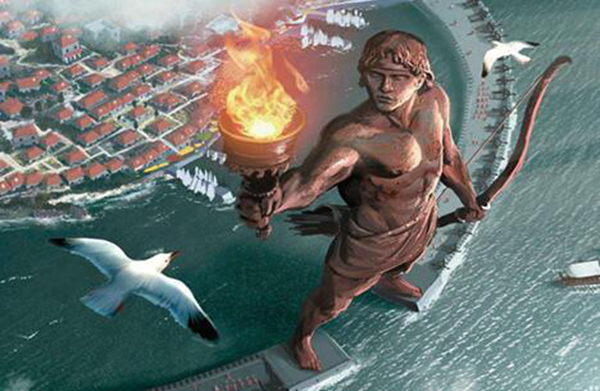 太阳神巨像位于罗德市的入口的地方,在公元前282年才建造完成,这是希腊太阳神赫利俄斯的青铜铸像,整个神像高度达到了三米,一共经历了56 年才建造完成,在一次地震中倒下。