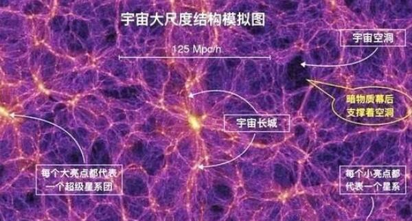 上图是科学家探测出的宇宙大尺度结构(并不准确),里面每一个亮点就是一个星系,每个节点都是一个超星系团。而这些具体的存在,仅仅只有300万秒差距内的星系分布密度(一秒差距为3.26光年左右),由此科学家观察出:宇宙大约有930亿光年的直径!。