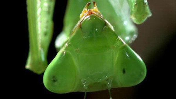 雌螳螂会先将卵产在叶子上面,一个月之后小蟑螂成功出来,并且经过蜕皮之后成为了成年之后的模样。
