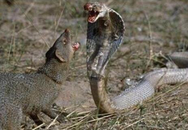 蛇类十大天敌克星之一蛇獴,这是相当有名的不怕蛇的动物。它们是不害怕蛇毒的,同时还喜欢和蛇斗争对抗。不过它们也不会像平头哥一样直接上前刚,也是讲究技巧性的。即使被蛇咬到也不害怕,它们身体对蛇毒免疫。