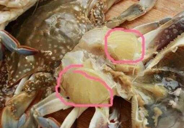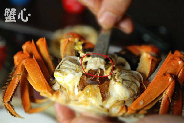 蟹鳃是最明显的一个位置了,只要将蟹壳打开,两排灰色的软绵绵的东西就是,这是螃蟹呼吸的东西最好也不要吃。