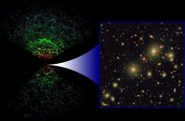 这个宇宙中的长城名史隆长城,在2003年被人类发现,它由数千万多星系组成,简单来说就是许许多多星系组成的巨墙!这个距离地球10亿光年之外,有着13.7亿光年长的史隆长城,也被认为是目前宇宙中被观察到的第二大的结构,仅比宇宙第一大结构要小。
