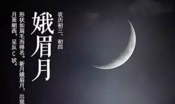 在农历月底的时候月亮性质和眉毛有些类似,所以被称之为峨眉月,峨眉月也有两种不同的说法,一是新月娥眉月或者是残月娥眉月,前者一般是月头的傍晚时分,这个时候的月亮在西边的天上出现,看着和反C状一样,而后者是月底的黎明时分,这个时候的月亮是正C状。