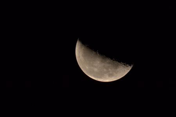 下弦月和上弦月是相对的,一般是每个月的二十二、二十三日,这个时候人们只能看到月亮东边的半圆。