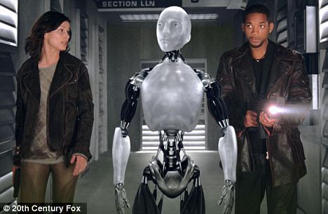 热门科幻影片《机械公敌》剧照。影片的故事发生在2032年,主角是一个能够像人类一样行走、奔跑和说话的类人机器人