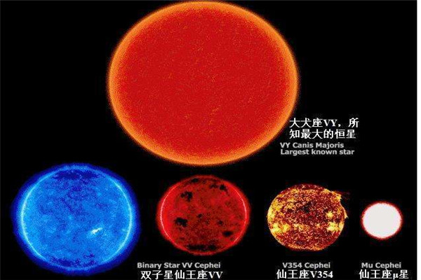 红超巨星没有具体的大小,科学家猜测大概是太阳的100倍,只能让其与其他的恒星进行比较。在序星中,太阳是主星序,经过主星序后,渐渐的会膨胀成红超巨星,所以在遥远的未来大家会看到的太阳变成红超巨星,红超巨星的大小,还没有具体资料。