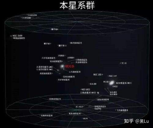 所谓本星系群指的即是包括地球所处之银河系为中心,半径约为百万秒差距(300多万光年)的空间内的星系之总称,也有人把本星系群的中心定义为银河系和仙女星系(M31)的公共重心。已知本星系群的成员星系和可能的成员星系有50个左右。本星系群中的全部星系覆盖一块直径大约1000万光年的区域(希望对这个距离有个详细概念请参见1E23米). 本星系群又属于范围更大的室女座超星系团.