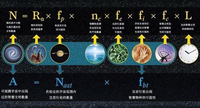 在整个公式中,德雷克用不同的字母代替了可能影响外星文明数量的不同因素。